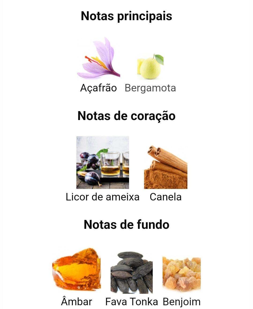 As notas de fundo são: Âmbar, Fava Tonka e Benjoim.